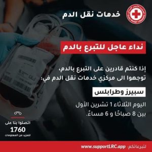 نشر الصليب الأحمر اللبناني عبر حسابه على “اكس”، صورة، موجّهاً نداء عاجلاً للتبرّع بالدم